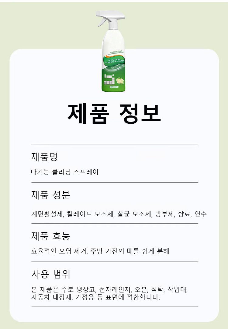 【안전하고 순한】 올인원 다기능 클리닝 스프레이