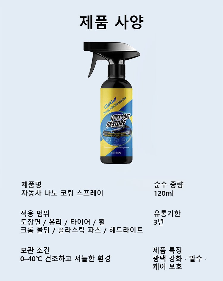 단 한 번의 분사로 반짝이는 광택과 오랜 방수 효과!